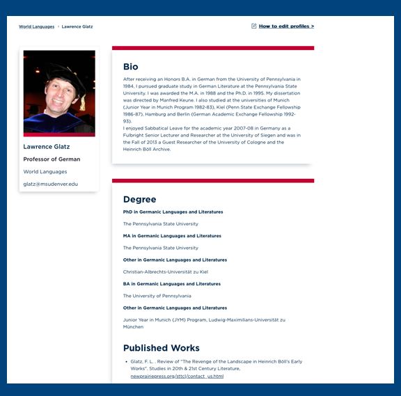 “Our faculty and staff are one of MSU Denver’s greatest strengths — they set us apart for prospective students and employees and play a vital role in shaping our reputation,” said Whei Wong, associate vice president of Marketing, Brand and Digital Strategy. “These improvements will showcase individual and collective expertise and create new opportunities for engagement and visibility.”